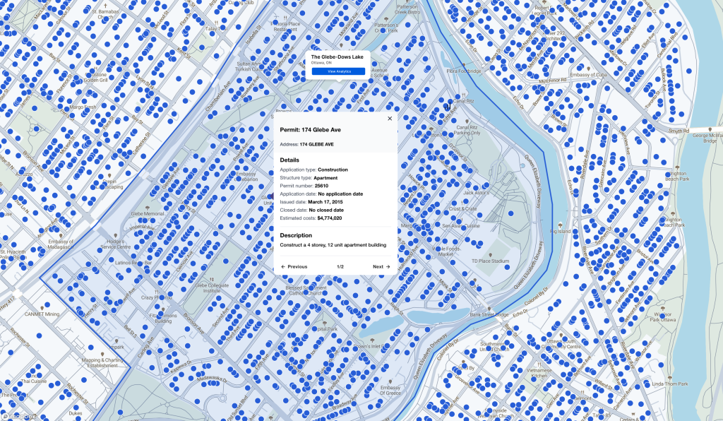 - Spot opportunities early – Track neighbourhood growth by the number or value of permits to find up-and-coming markets.